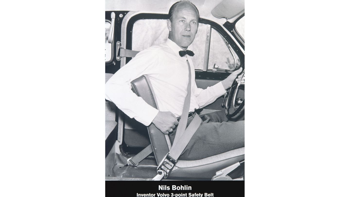 În 1959, inginerul Volvo Nils Bohlin a dezvoltat centura de siguranță modernă în trei puncte. Deși designul a fost patentat, compania a decis ca patentul să rămână deschis, disponibil pentru utilizarea gratuită de către toți constructorii de vehicule. Această decizie mai degrabă neconvențională a fost adoptată în interesul siguranței publice, pentru a se asigura că toată lumea, indiferent că se află la volanul unui Volvo sau al altui vehicul, beneficiază de siguranță în trafic. Această decizie s-a dovedit a fi foarte benefică pentru întreaga lume.